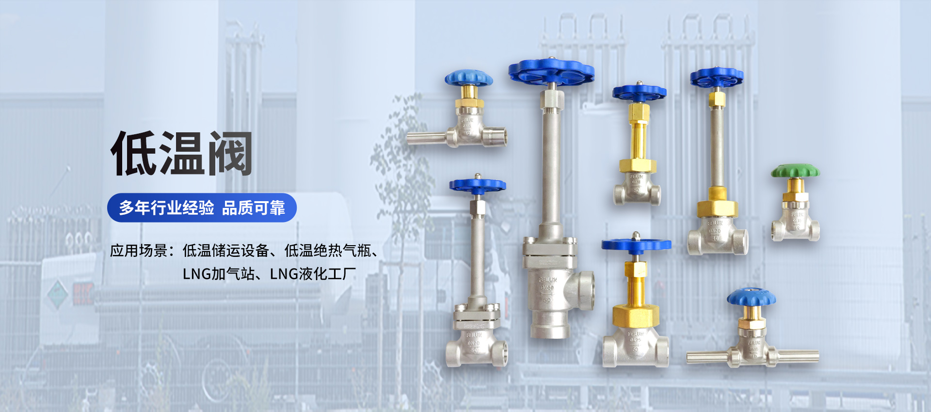 公司主导产品有:低温绝热气瓶阀门系列、低温储运设备阀门系列、车用压缩天然气瓶阀、车用高压储氢气瓶组合阀门、各种工业高中压气瓶阀门、管道截止阀门、管道减压器;消防用空气呼吸瓶阀、调压器、报警哨、高中压软管;气体自动切换箱、集中供气装置、高精度气体混配器、回火防止器、气体终端箱、自动点火装置、火焰割炬、气瓶检测成套设备等系列产品。产品畅销全国,并出口到全球各地,深受用户的信任和好评。我公司还将进一步增加技术投入,扩大生产规模,并提高服务的质量和水平。